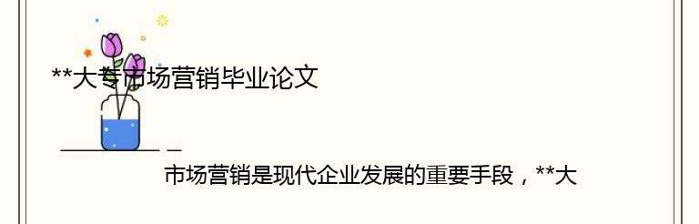 市场营销是现代企业发展的重要手段,**大专市场营销专业的毕业论文是对学生在市场营销领域所学知识的综合应用和实践能力的考验。在撰写毕业论文时,需要遵循一定的规范和要求,以确保论文的质量和可信度。