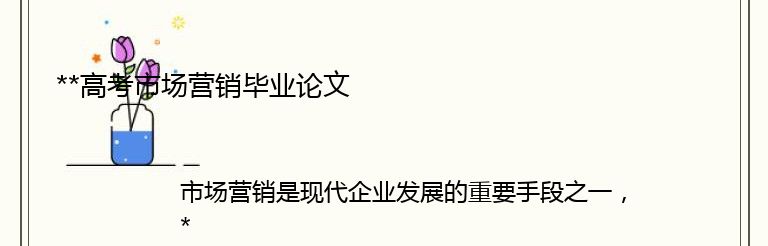 综上所述,市场营销是现代企业发展的重要手段之一,**高考市场营销专业的学习和研究对于企业的发展具有重要的意义。企业需要通过市场调研、产品设计、品牌推广、销售管理等手段,实现产品的销售和利润最大化,为企业的可持续发展提供保障。