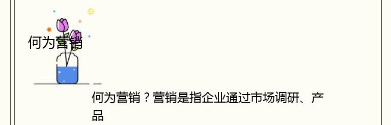 何为营销?营销是指企业通过市场调研、产品设计、价格策略、广告宣传等手段,以满足消费者需求为目的,促进产品销售和企业发展的一种经营活动。
