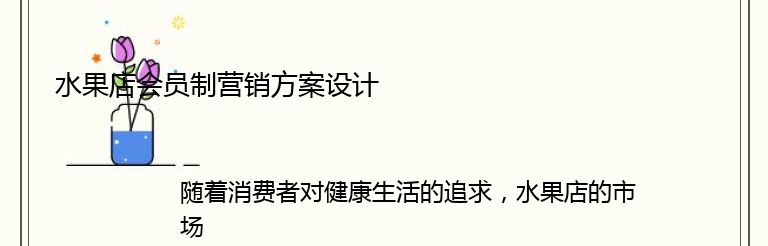 随着消费者对健康生活的追求,水果店的市场需求也越来越大。为了吸引更多的顾客,提高客户忠诚度,水果店可以考虑推出会员制营销方案。