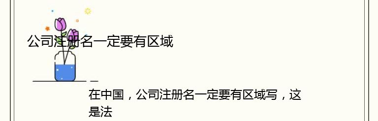 在中国,公司注册名一定要有区域写,这是法律规定的必要条件。这是因为公司注册名是公司的重要标识,它不仅代表着公司的品牌形象,也是公司在市场上的重要竞争力。