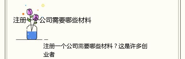 以上是注册一个公司需要的一些常见材料清单,具体要求可能因地区和行业而异。在准备注册公司之前,建议先了解当地的相关法律法规和政策,以确保注册过程顺利进行。