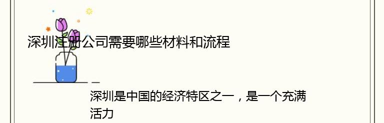 总之,深圳注册公司需要一些材料和流程,但是如果您按照正确的步骤进行,注册过程应该是相对简单和快速的。如果您需要帮助,可以咨询专业的注册公司服务机构。