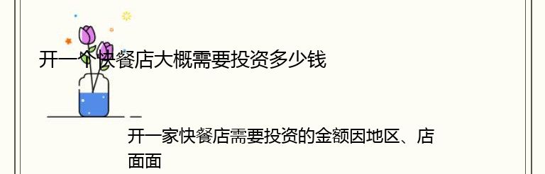 开一家快餐店需要投资的金额因地区、店面面积、装修风格、设备品质等因素而异。一般来说,投资金额在10万元至50万元之间。