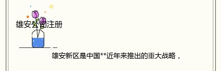 总之,雄安公司的注册成立是雄安新区建设的重要里程碑,也是中国城市化进程中的重要一步。相信在**和企业的共同努力下,雄安新区将成为一个现代化、智能化、绿色化的城市,为中国的发展和进步做出更大的贡献。