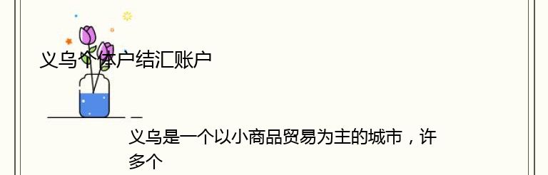 总之,义乌个体户结汇账户的开设是个体户在国际贸易中必不可少的一环。它可以帮助个体户更好地管理财务,提高交易效率,为个体户的国际贸易发展提供有力的支持。