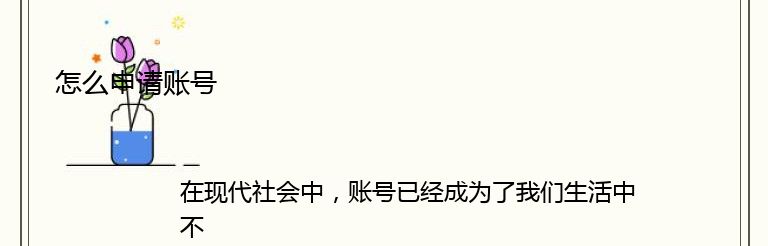 在现代社会中,账号已经成为了我们生活中不可或缺的一部分。无论是购物、社交、学习还是工作,都需要账号来进行身份验证和数据管理。那么,怎么申请账号呢?下面就为大家介绍一下。
