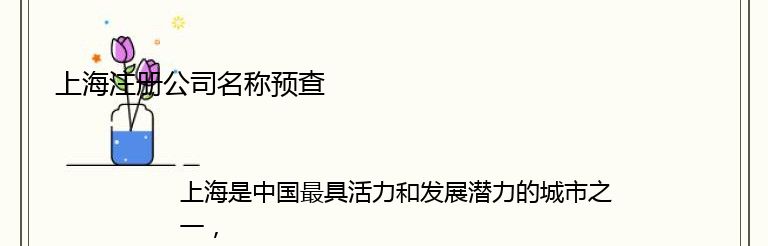 上海是中国最具活力和发展潜力的城市之一,吸引了众多国内外企业前来注册公司。在注册公司之前,需要进行公司名称预查,以确保公司名称符合相关法律法规和规定。