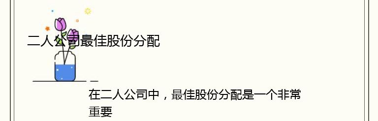 在二人公司中,最佳股份分配是一个非常重要的问题。这涉及到公司的所有权和控制权,对于公司的发展和未来都有着至关重要的影响。