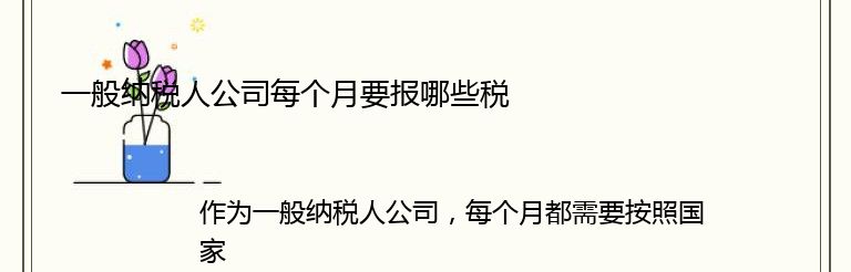 作为一般纳税人公司,每个月都需要按照国家税收政策规定缴纳一定的税款。这些税款包括: