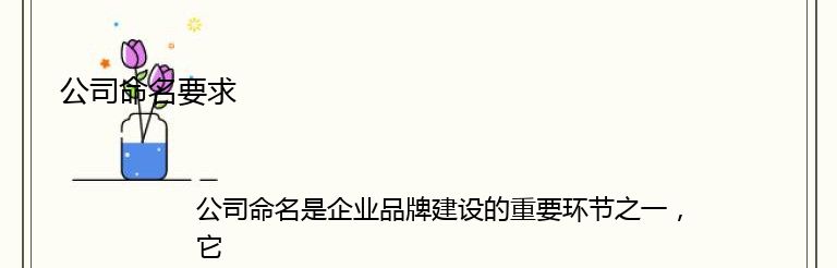 公司命名是企业品牌建设的重要环节之一,它不仅代表着企业的形象和文化,还直接影响着企业的市场竞争力和发展前景。因此,一个好的公司命名必须具备以下几个要求: