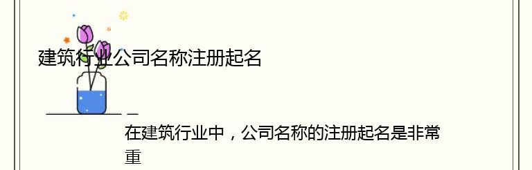 在建筑行业中,公司名称的注册起名是非常重要的一步。一个好的公司名称可以让客户对公司产生信任感,提高公司的知名度和竞争力。以下是一些建筑行业公司名称注册起名的建议: