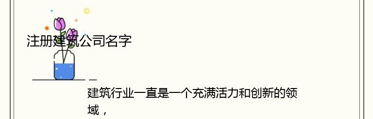 建筑行业一直是一个充满活力和创新的领域,而注册建筑公司名字则是这个行业中最重要的一步。一个好的公司名字可以让客户对公司产生信任和兴趣,同时也可以帮助公司在市场上脱颖而出。