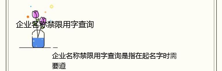 企业名称禁限用字查询是指在起名字时需要遵守国家相关规定,不能使用禁限用字。禁限用字是指国家规定的不能在企业名称中使用的字词,包括政治、宗教、民族、地域、性别歧视等方面的词语。