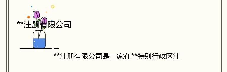 **注册有限公司是一家在**特别行政区注册成立的企业。公司成立于2000年,是一家以经营贸易、投资、咨询为主的综合性企业。