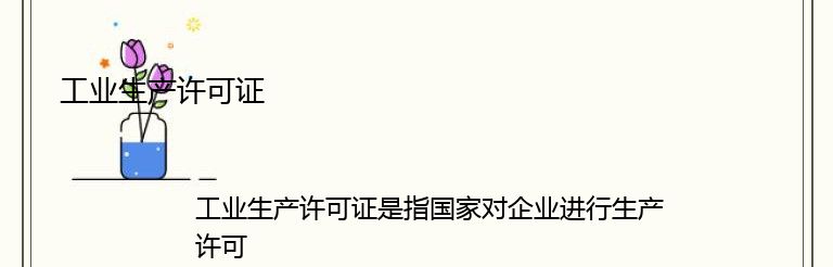 工业生产许可证是指国家对企业进行生产许可的一种证书,是企业合法生产的凭证。根据《中华人民共和国生产许可证管理条例》,凡是从事生产、经营、进出口等活动的企业,必须取得相应的生产许可证。