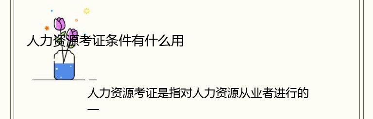 人力资源考证是指对人力资源从业者进行的一种考核和认证,旨在评估其专业知识和技能水平,以提高其职业素质和竞争力。人力资源考证条件是指参加考证的人员需要满足的一系列条件,包括学历、工作经验、培训经历等。
