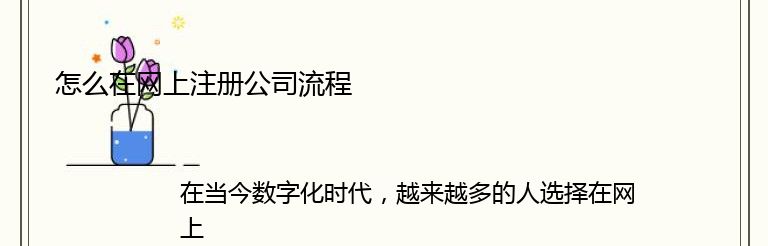 在当今数字化时代,越来越多的人选择在网上注册公司。这种方式不仅方便快捷,而且省去了繁琐的线下手续。那么,怎么在网上注册公司呢?下面是具体流程: