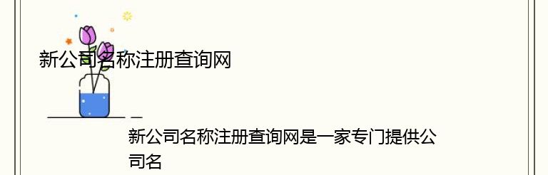 新公司名称注册查询网是一家专门提供公司名称注册查询服务的网站。在现代社会,公司的名称是非常重要的,它不仅代表着公司的品牌形象,还涉及到公司的法律地位和商业信誉。因此,选择一个合适的公司名称是每个创业者都必须面对的问题。