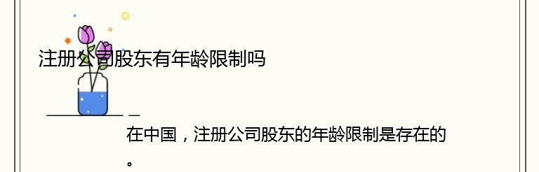 在中国,注册公司股东的年龄限制是存在的。根据《公司法》的规定,公司股东必须年满18周岁,且具有完全民事行为能力。这意味着,未成年人和被法院认定为限制民事行为能力或无民事行为能力的人是不能成为公司股东的。