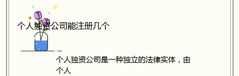 个人独资公司是一种独立的法律实体,由个人独资经营,其注册数量并没有明确的限制。但是,根据相关法律法规的规定,个人独资公司的注册需要满足一定的条件和程序。