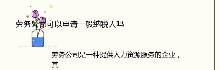劳务公司是一种提供人力资源服务的企业,其主要业务是为客户提供人力资源招聘、管理、培训等服务。在劳务公司的经营过程中,纳税是一个非常重要的环节。那么,劳务公司可以申请一般纳税人吗?