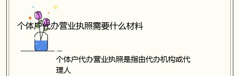 个体户代办营业执照是指由代办机构或代理人代表个体户进行营业执照申请和办理的服务。如果您是个体户,想要代办营业执照,需要准备以下材料: