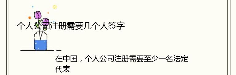 在中国,个人公司注册需要至少一名法定代表人,但是在实际操作中,通常需要至少两名股东签字。以下是个人公司注册需要的签字人员: