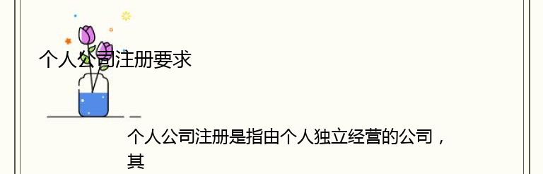 个人公司注册是指由个人独立经营的公司,其注册要求包括以下几个方面: