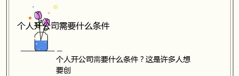 个人开公司需要什么条件?这是许多人想要创业的问题。以下是一些必要的条件: