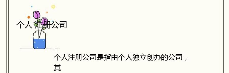 个人注册公司是指由个人独立创办的公司,其所有权和经营权均由个人掌握。相比于其他类型的公司,个人注册公司具有注册简单、成本低、管理灵活等优势。