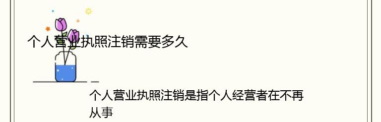 个人营业执照注销是指个人经营者在不再从事经营活动或者经营活动终止后,向工商行政管理部门申请注销个人营业执照的行为。那么,个人营业执照注销需要多久呢?