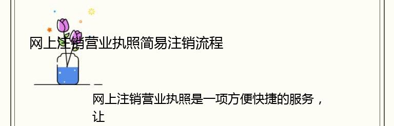 总之,网上注销营业执照是一项非常方便的服务,可以大大节省企业注销手续的时间和精力。企业只需要按照以上简易流程操作,就可以轻松完成注销手续。