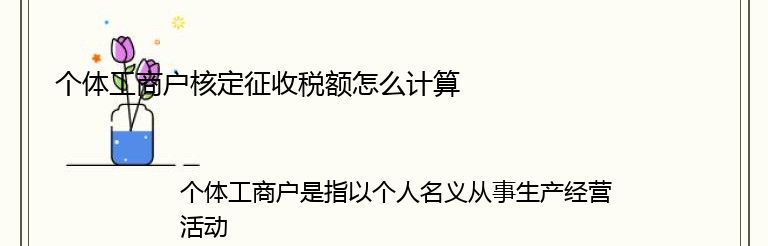 个体工商户是指以个人名义从事生产经营活动的自然人,其纳税方式与企业不同,需要进行核定征收税额。那么,个体工商户核定征收税额怎么计算呢?