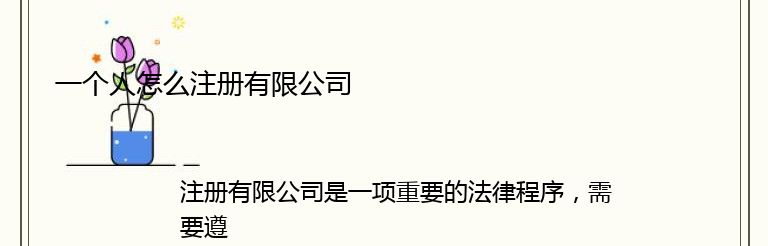 注册有限公司是一项重要的法律程序,需要遵循一定的规定和程序。以下是一个人如何注册有限公司的步骤: