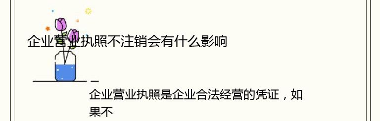 企业营业执照是企业合法经营的凭证,如果不注销会有以下影响: