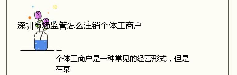 个体工商户是一种常见的经营形式,但是在某些情况下,可能需要注销个体工商户。那么,深圳市场监管怎么注销个体工商户呢?下面就为大家介绍一下。