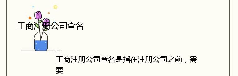 工商注册公司查名是指在注册公司之前,需要先进行公司名称的查询,以确保所选名称没有被其他公司注册或使用。这是公司注册的第一步,也是非常重要的一步。