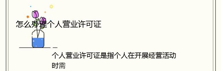 个人营业许可证是指个人在开展经营活动时需要向相关部门申请的一种证照。那么,怎么办理个人营业许可证呢?下面就为大家介绍一下。