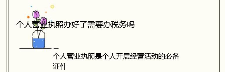 个人营业执照是个人开展经营活动的必备证件,但是仅仅拥有个人营业执照并不意味着您已经完成了所有的手续。在开展经营活动的过程中,您还需要办理税务登记,以便依法纳税。