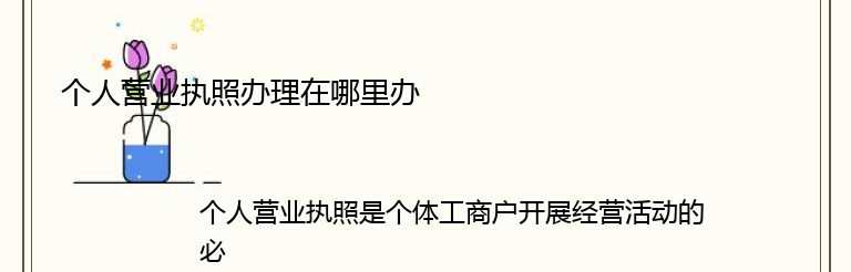 个人营业执照是个体工商户开展经营活动的必备证件,办理个人营业执照需要前往工商行政管理部门进行申请。具体来说,个人营业执照的办理地点包括以下几个方面: