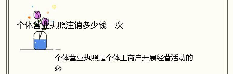个体营业执照是个体工商户开展经营活动的必备证件,但是在某些情况下,个体工商户需要注销营业执照。那么,个体营业执照注销多少钱一次呢?