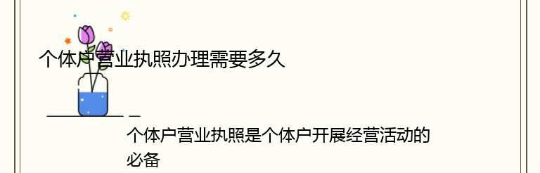 个体户营业执照是个体户开展经营活动的必备证件,办理个体户营业执照需要一定的时间和步骤。