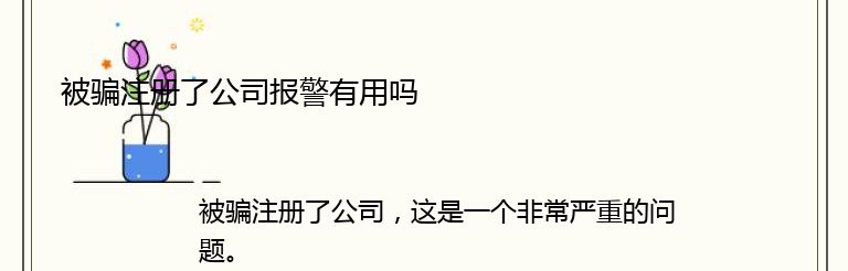 被骗注册了公司,这是一个非常严重的问题。如果您发现自己被骗注册了公司,您可能会感到非常沮丧和无助。但是,报警是一个非常重要的步骤,可以帮助您解决这个问题。