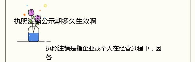 那么,执照注销公示期多久生效呢?一般来说,执照注销公示期的时间是由相关部门根据实际情况来确定的。在中国,执照注销公示期的时间一般为45天,也就是说,企业或个人提交执照注销申请后,需要等待45天的公示期结束后,才能正式注销营业执照。