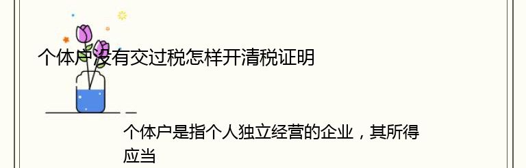个体户是指个人独立经营的企业,其所得应当依法纳税。但是,有些个体户可能由于种种原因,没有及时缴纳税款,导致没有清税证明。那么,个体户没有交过税怎样开清税证明呢?