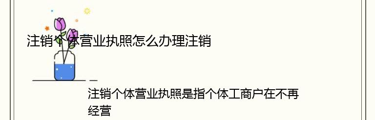 注销个体营业执照是指个体工商户在不再经营个体工商业务时,需要将其个体营业执照进行注销的一项行为。注销个体营业执照需要遵循一定的程序和规定,下面就为大家介绍一下具体的办理流程。