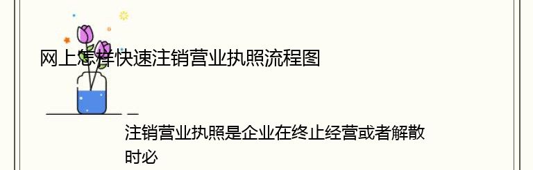注销营业执照是企业在终止经营或者解散时必须进行的一项法律程序。随着互联网的发展,现在可以通过网上快速注销营业执照,省去了繁琐的线下手续。下面是网上快速注销营业执照的流程图: