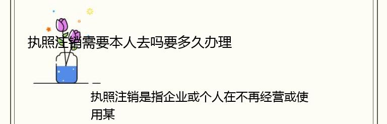 执照注销是指企业或个人在不再经营或使用某项业务时,需要将相关执照进行注销的一项行为。那么,执照注销需要本人去吗?要多久办理呢?