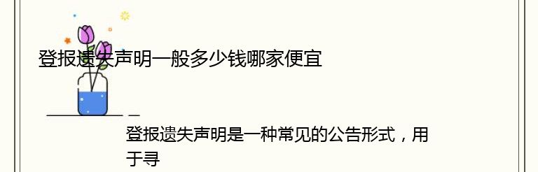 那么,登报遗失声明一般多少钱呢?这个问题并没有一个固定的答案,因为不同的报纸、不同的地区、不同的版面位置都会对价格产生影响。一般来说,大城市的报纸价格会比较高,而小城市的报纸价格则相对较低。